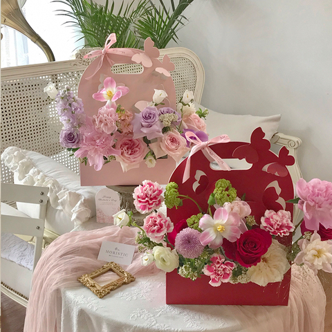JAYWOOD-Caja portátil de estilo coreano con forma de mariposa y flores, embalaje de rosas para regalo, venta al por mayor, nuevo diseño
