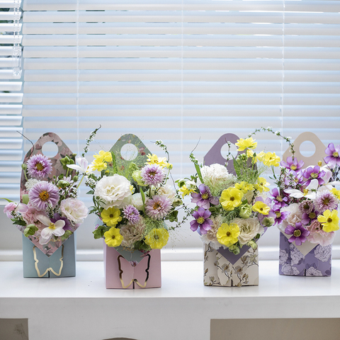 JAYWOOD, nuevo diseño, caja de flores plegable portátil para ventana, regalo de flores frescas, caja cuadrada ranurada con asa, cartón duradero hecho