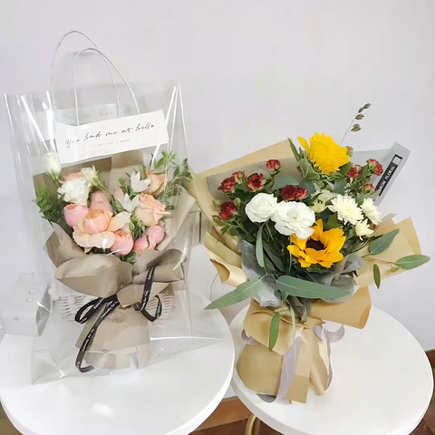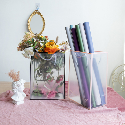 JAYWOOD热卖20件防水塑料包装手袋礼品包装透明花提包带纸柄