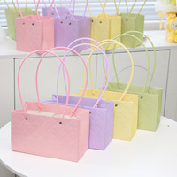 JOYWOOD彩色马卡龙手提包格子梯形纹理方形包礼品袋带手礼品袋批发