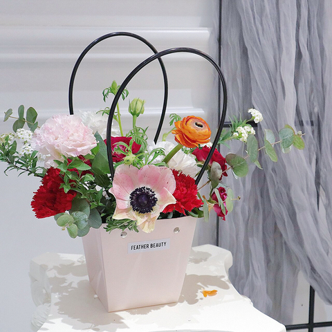 JOYWOOD梯形防水硬可折叠可定制鲜干花纸盒礼品袋工艺花袋带手柄